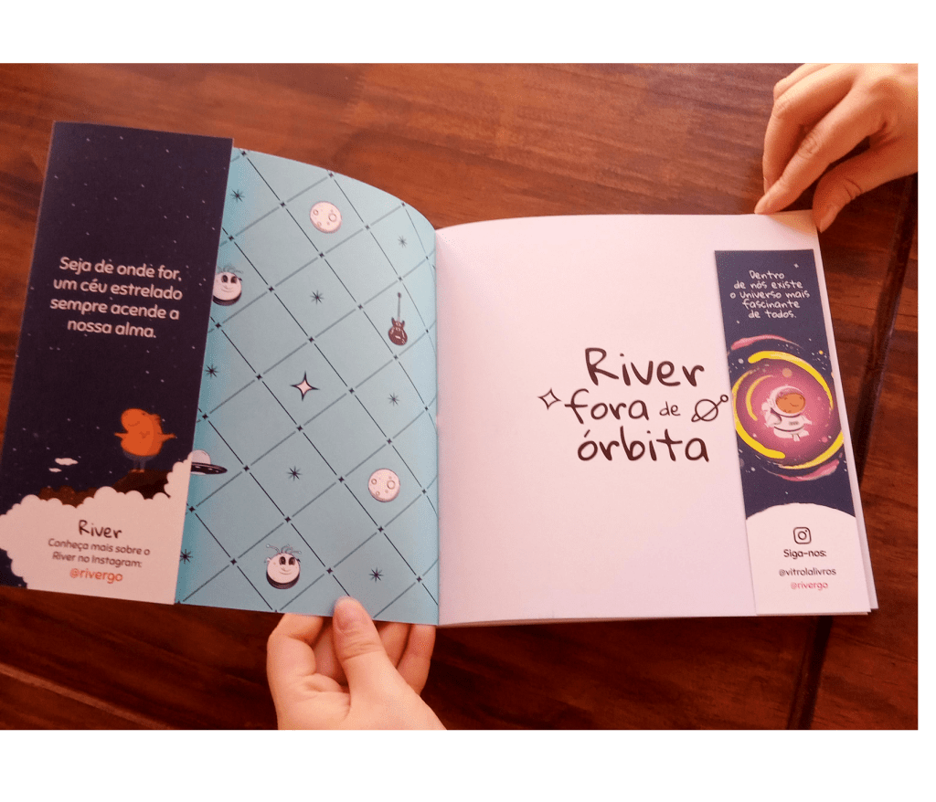 Com belas ilustrações e frases inspiradoras, River Fora de Órbita convida você para embarcar em uma jornada pelo espaço, desbravar as estrelas, refletir e conhecer o maior de todos os universos: aquele que existe dentro de nós.
