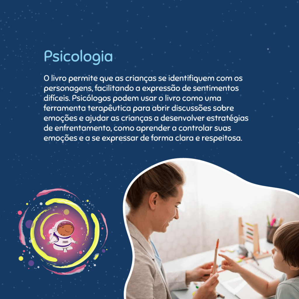 O livro permite que as crianças se identifiquem com os personagens, facilitando a expressão de sentimentos difíceis. Psicólogos podem usar o livro como uma ferramenta terapêutica para abrir discussões sobre emoções e ajudar as crianças a desenvolver estratégias de enfrentamento, como aprender a controlar suas emoções e a se expressar de forma clara e respeitosa. 🧠